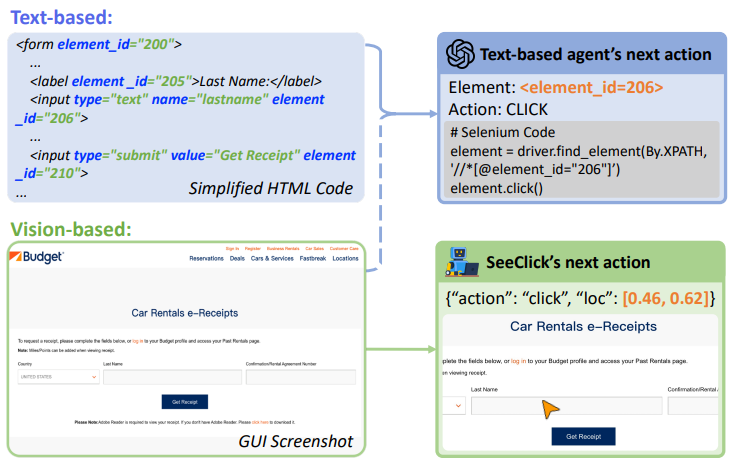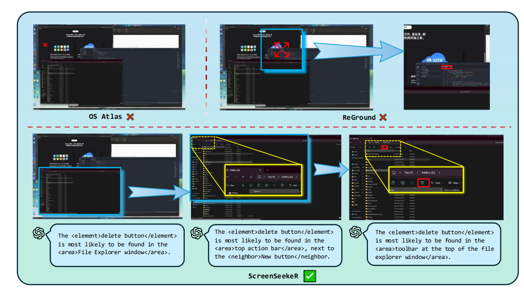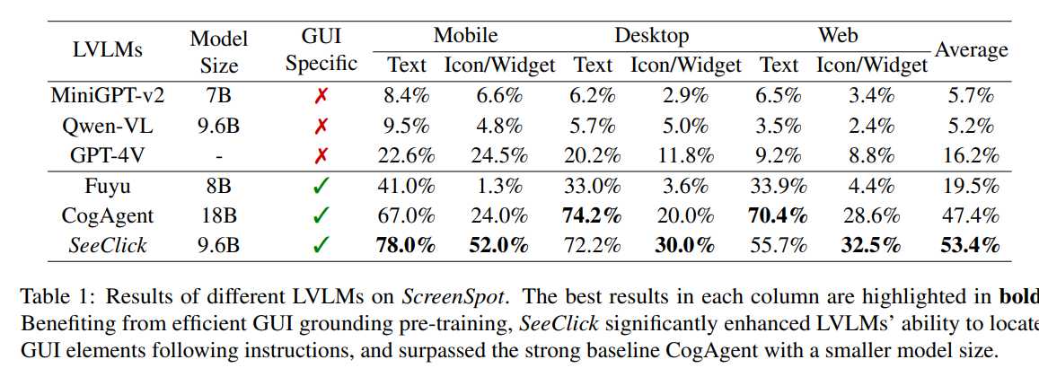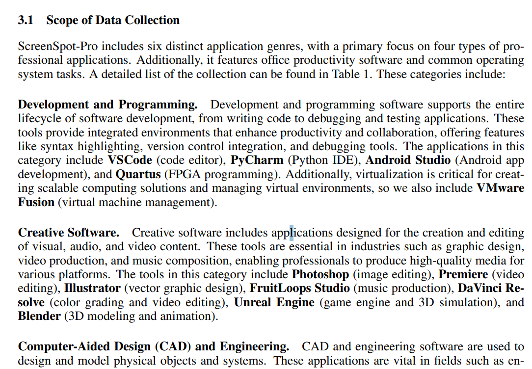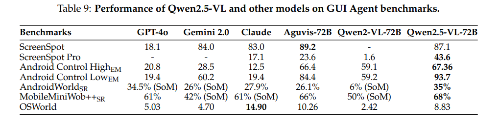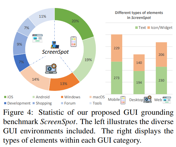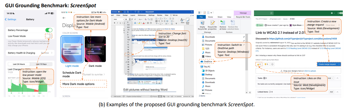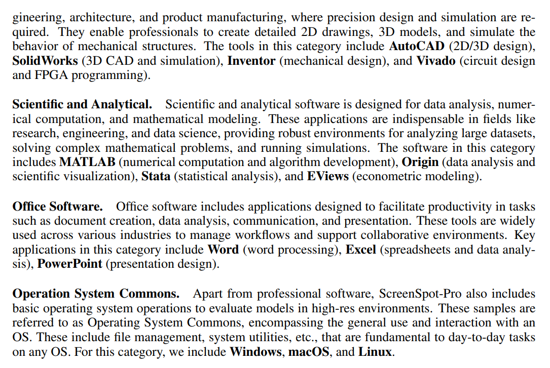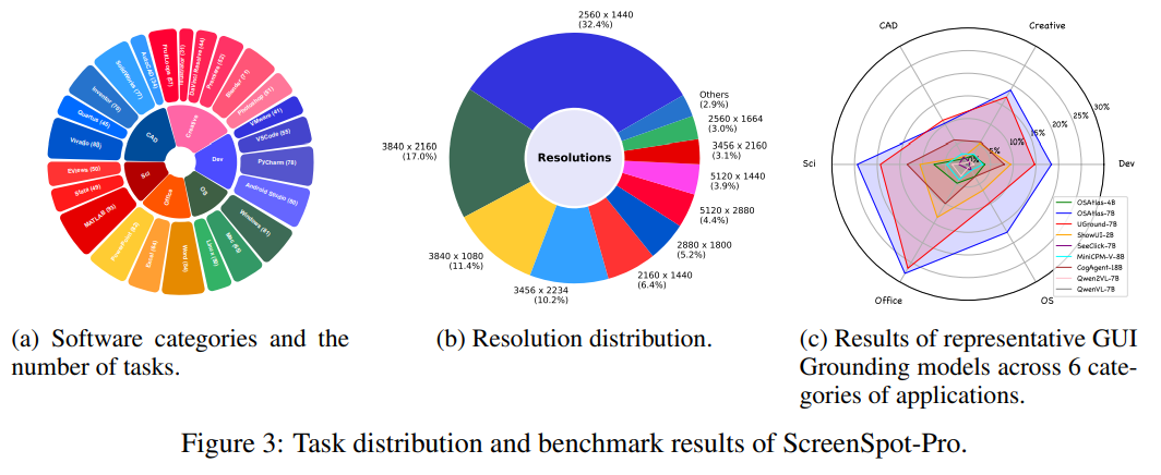 # 0 Brief 在尝试使用多模态大模型做一些垂类场景的验证和测试,所以一直在尝试Qwen系列VL模型的效果。随着Qwen3-VL 4B和8B的开源 https://www.datalearner.com/blog/1051760490394906 更加面向AI Agent和机器人,因为本身想要验证的垂类场景对图像的要求极为苛刻,要在高保真图像中找到像素级微小的缺陷(以下图为例找出印刷品上印刷结果和原矢量图上的区别,`要求忽略掉本身印刷物的色差的因素,又要找到相关印刷缺陷,如多墨、少墨、墨点、墨线、漏印、覆盖等等`),所以回过头来仔细看一下在Agent场景评估的一些任务和指标,以便确认当前QwenVL系列的数据和能力的提升,以及如何评估对于指代性任务的表现。  # 1 指标  从Qwen2.5 VL和Qwen3VL使用的Agent的评价指标来看,整体任务分成以下几种: `“ The UI elements grounding is evaluated by ScreenSpot (Cheng et al., 2024) and ScreenSpot Pro (Li et al., 2025a). Offline evaluations are conducted on Android Control (Li et al., 2024f), while online evaluations are performed on platforms including AndroidWorld (Rawles et al., 2024), MobileMiniWob++ (Rawles et al., 2024), and OSWorld (Xie et al., 2025)”` ## 1.1 ScreenSpot 论文《SeeClick: Harnessing GUI Grounding for Advanced Visual GUI Agents》(南京大学计算机学院和上海AIlab)是一项关于视觉GUI智能体的开创性工作,主要聚焦于提升GUI智能体的grounding能力,即`智能体对图形界面元素的准确定位和理解能力`。在人工智能和自然语言处理领域,grounding指的是将抽象的语言、指令或符号与现实世界中的具体实体、感知信息或环境状态建立联系的过程。 具体来说,grounding就是让模型或智能体能够“理解”语言或指令所指代的实际对象或场景,从而实现准确的操作或推理。 举个例子: * 在视觉GUI代理中,grounding就是让智能体能够根据界面截图和指令,准确定位到“按钮”、“输入框”等具体的界面元素,而不是仅仅停留在文字描述层面。 * 在机器人领域,grounding意味着机器人能够将“拿起桌子上的红色杯子”这句话中的“红色杯子”与它通过摄像头看到的具体物体对应起来。 ### 这篇论文的核心内容包括: 1. 提出了一种名为SeeClick的视觉GUI代理,仅依靠界面截图,在不同GUI平台上执行点击和打字等操作,避免依赖冗长或不可访问的结构化文本数据(如HTML、DOM等)。  2. 设计了一种GUI grounding预训练策略,通过增强模型对界面元素的定位能力,提升智能体在复杂GUI任务中的表现。   3. `构建了一个名为ScreenSpot的基准数据集,包含来自多种GUI平台(iOS, Android, MacOS, Windows 和 webpages)的600个截图和1200多条指令,用于训练和评估GUI grounding能力。`  4. 实验结果表明,增强的grounding能力是提升下游GUI任务性能的关键。 该工作解决了传统GUI智能体依赖结构化数据的局限,强调通过视觉信息和自然语言输出实现更高效、更通用的GUI操作智能体。  ### 关于数据构建 数据来源包括三种:网络上爬取的webui数据,移动端UI理解数据和VL指令跟随的通识数据。互联网数据大概300k左右,包含文本信息的图像展示和一些特殊标题或者文本在鼠标悬浮状态下的展示信息,以确保能够收集到足够的用来做理解任务和OCR任务的文本信息和符号信息。 移动端数据则包含:UI组件,UI理解和移动端UI总结。包含20k截屏、40k组件和100k描述。   ## 1.2 ScreenSpot Pro 论文《ScreenSpot-Pro: GUI Grounding for Professional High-Resolution Computer Use》(新加坡国立,香港浸会,东南大学,salesforce研究所等等)提出了一个新的GUI grounding基准,专门用于评估和推动在专业、高分辨率计算机环境下的GUI智能体能力。 ### 该论文主要内容包括: * 高分辨率环境适配:针对专业用户使用的高分辨率、多显示器等复杂界面环境,设计了更具挑战性的GUI grounding任务。不同于之前的评价数据,screenSpot pro数据具备高分辨率,专业应用和种类多样的特点(Visual Studio Code, AutoCAD, Photoshop等等),由专业用户标注数据质量较高。  * `基准数据集:构建了包含丰富界面元素和操作指令的高质量数据集,用于训练和评测GUI智能体的定位和理解能力。`包含1581条专家标注数据包含工作流和一个截屏,包括5种工业领域得23种应用,在3种常用的操作系统上。  * 提升GUI智能体性能:通过该基准,推动模型在复杂界面中准确识别和操作界面元素,提升智能体在真实办公环境中的实用性和鲁棒性。  * 该工作是对之前ScreenSpot基准的扩展,更加贴近专业用户的实际使用场景,促进多模态GUI智能体在高分辨率和复杂界面环境中的发展。 ### 关于数据 数据囊获了多种专业软件   在质量控制上,ScreenSpot-Pro采用了三种主要手段,包含超过两个以上5年专业经验的标注员的确认,目标框的精度确认,图标文字分类确认。 ### 关于基准评估 ScreenSpot-Pro 基准上评估的五种基线方法,具体包括: * GPT Instruction:利用强大的 GPT-4o 模型对截图进行分析,生成优化后的详细指令,辅助定位任务。 * 无规划器视觉搜索方法(Planner-Free Visual Search): * 迭代分割(Iterative Splitting):从整张截图开始定位,逐步将截图分割成更小的区域,选择预测所在的区域继续搜索,采用固定的2行×2列分割策略。 * 迭代缩小(Iterative Narrowing):类似迭代分割,但每次裁剪的区域以预测中心为中心,区域大小为当前图像宽高的一半。 * ReGround:基于初始预测裁剪周围区域重新定位,裁剪大小固定,可根据模型输入大小调整。 * ScreenSeekeR:基于代理的定位框架 * 利用应用界面通常具有的层级结